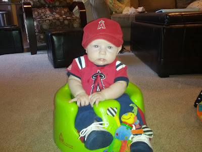 Tonight we are going to our first Angel game since Cameron was a baby with Nana and Grampy. Here's Carter all dressed in his gear and ready to go.